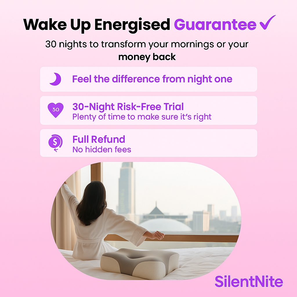 We offer a 30-day money-back guarantee. If Silent Nite doesn’t improve your sleep, return it hassle-free for a full refund.